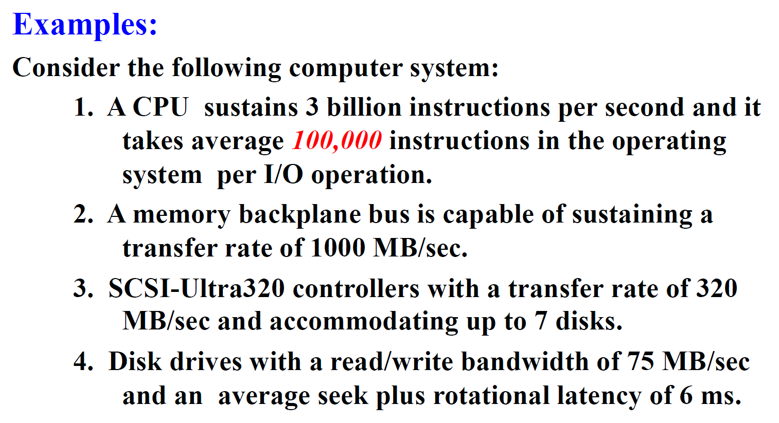 • I/O 设备的性能难以评估,在不同情况下需要用不同的方法测量