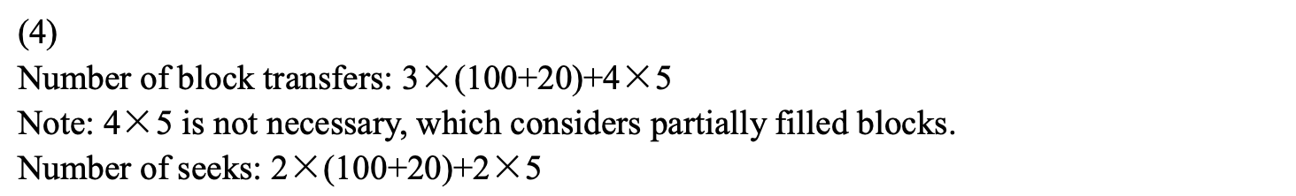 - 尽管我们可以在成本计算时考虑得更细,区分数据块读取和写入的成本,但为了简洁,我们就忽视这个细节问题了