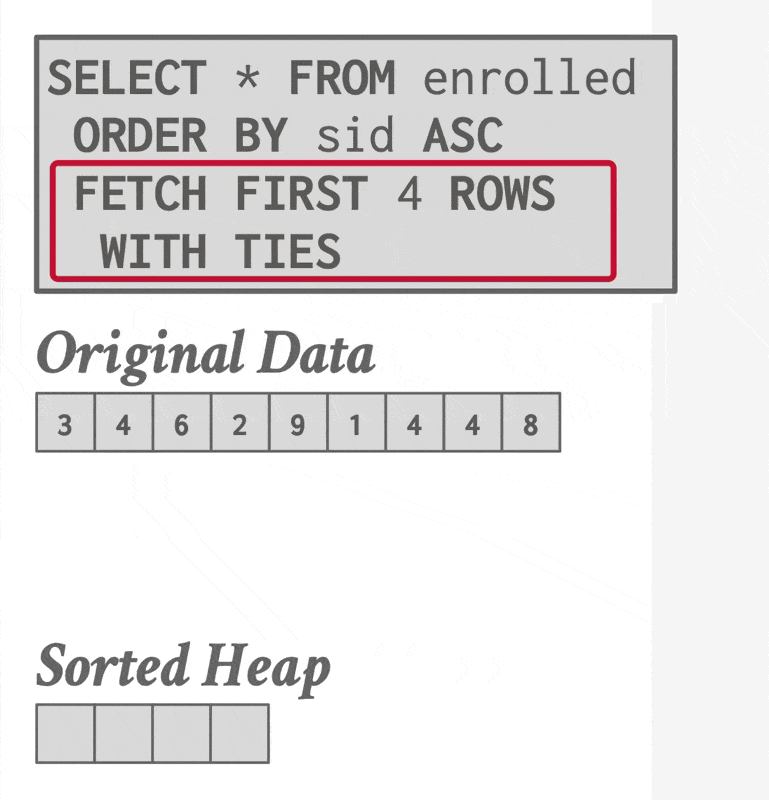 - 而在合并的时候,可以在生成元组的同时将其发送给消费者,因此可以与排序操作的消费者并行处理。