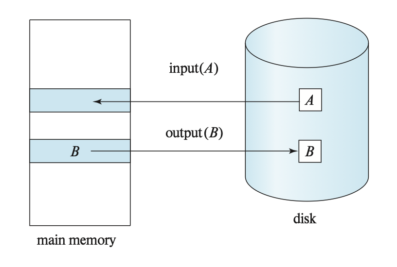 input(B):将物理块 B 传输到主存output(B):将缓存块 B 传输到磁盘,并替换掉合适的磁盘块