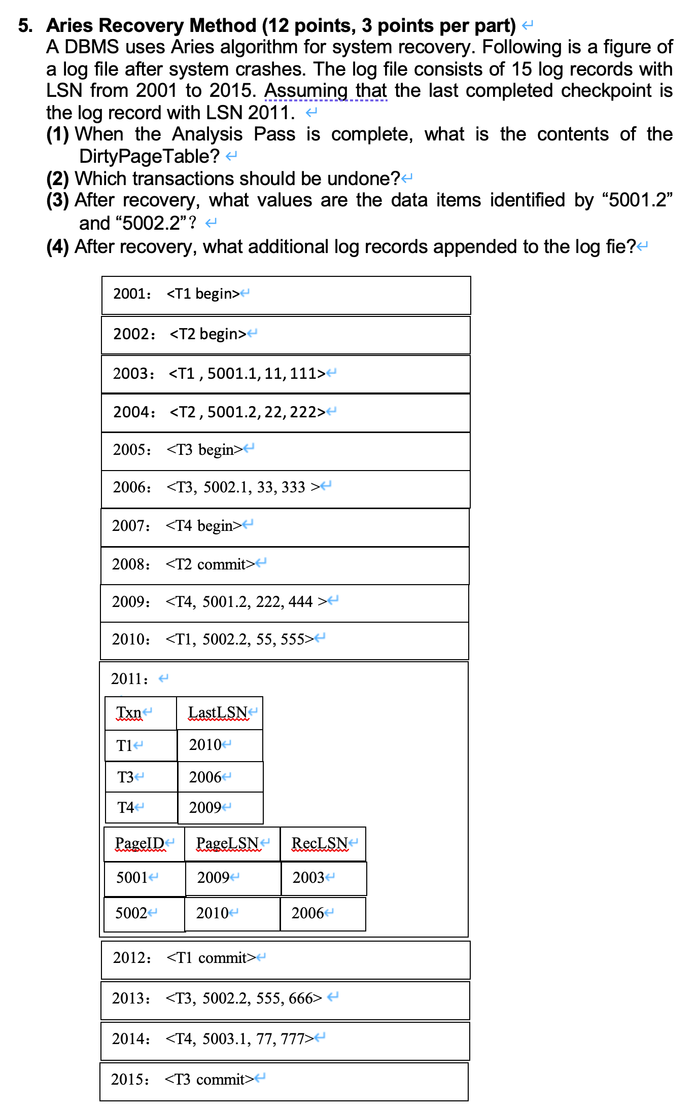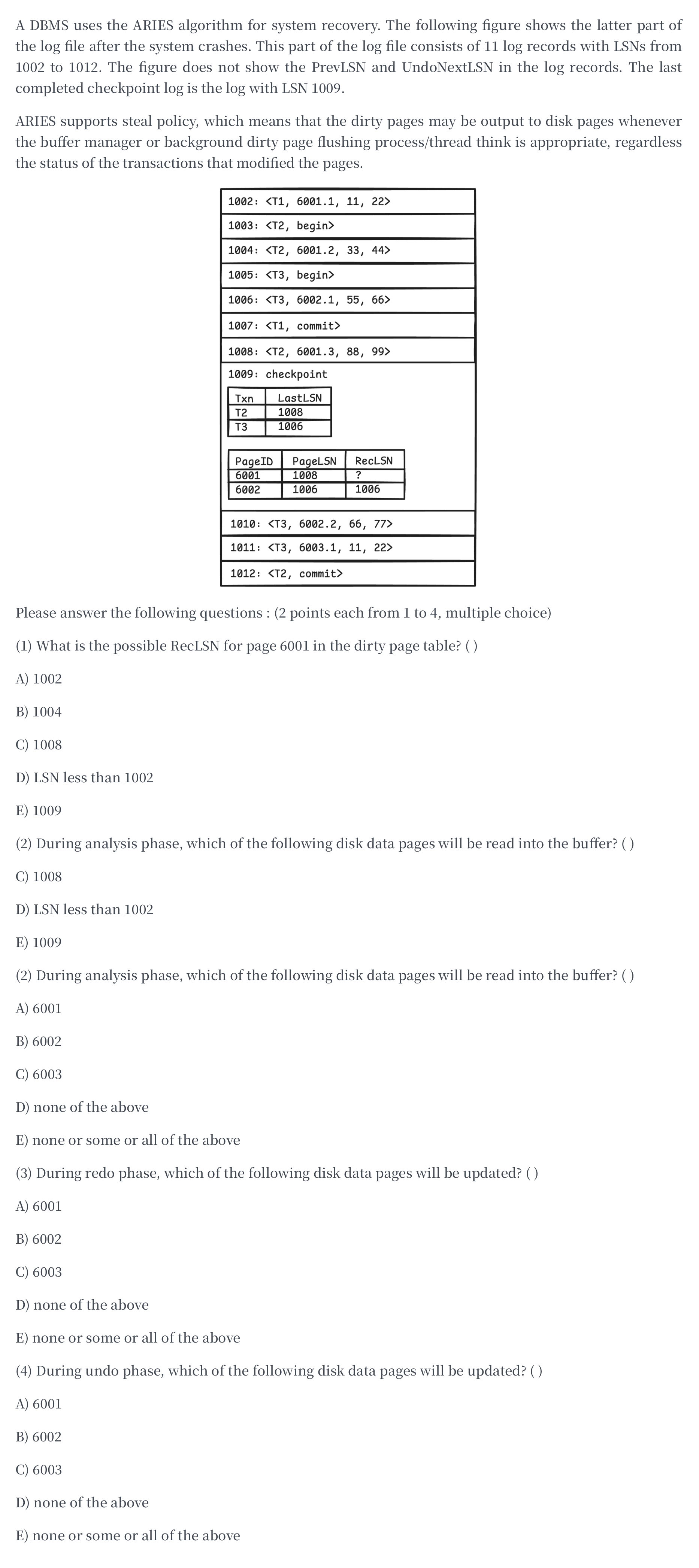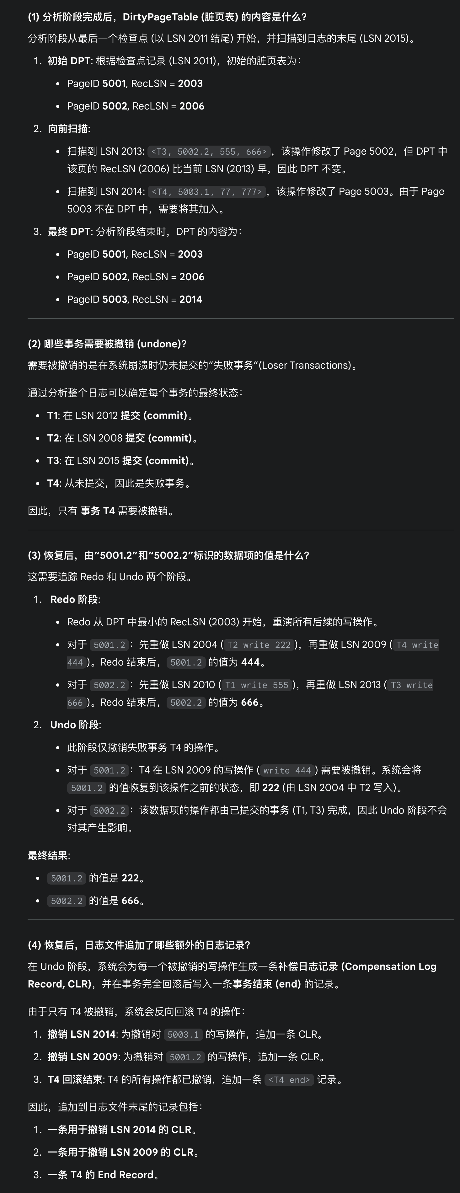 ) 。- 不过笔者认为教材的说法不够准确——没有必要在重做阶段扫描检查点,因此 RedoLSN 应该设置为检查点日志记录的下一条日志记录的 LSN