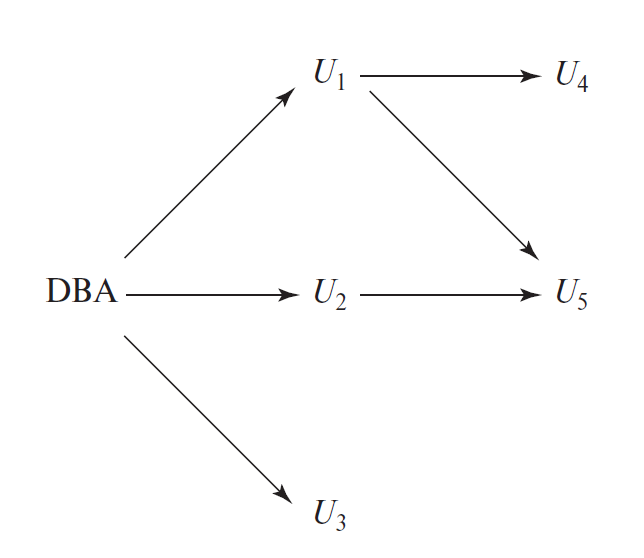 特定授权在用户之间的传递关系可以用授权图(authorization graph) 来表示。当且仅当在授权图中有一条从根节点到用户的路径时,该用户才具备特定的授权。