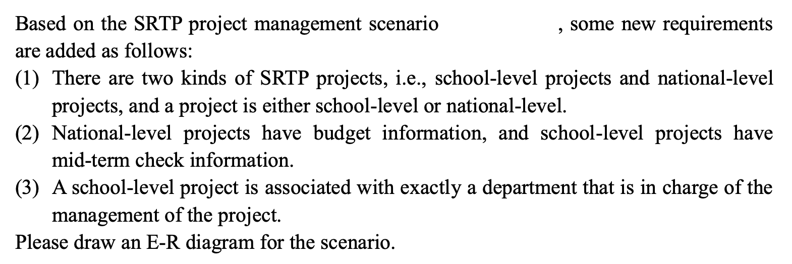 - 首先需要将数据库用户(或领域专家)的数据需求用符号化的语言表述,结果得到一份用户需求的具体规范,这里假定以文本形式呈现。