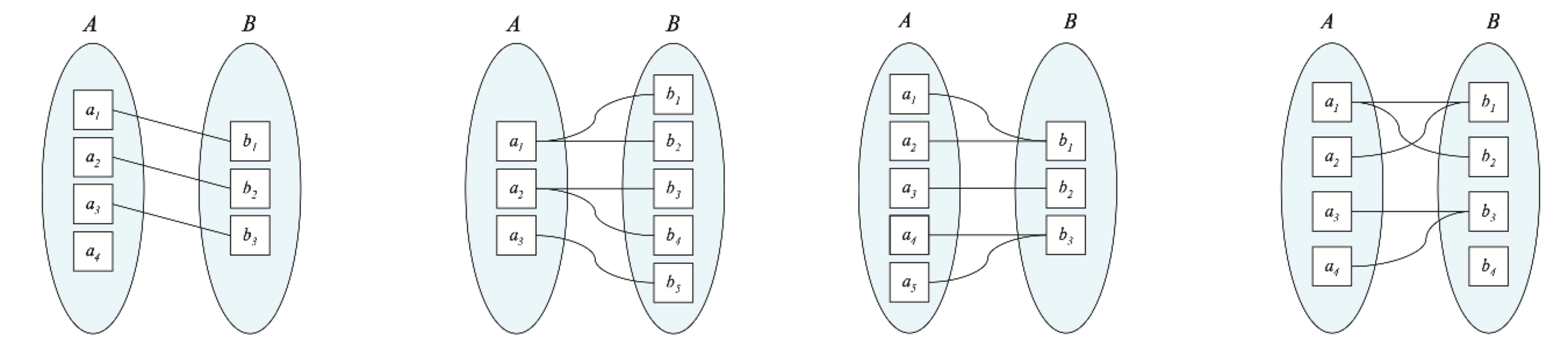 下面四张图分别表示这四类映射基数:
