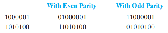 - 偶校验 (even parity):整个编码包含 1 的个数是偶数