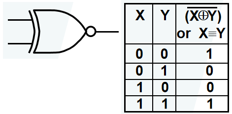 XNOR( 同或门 ) \(\overline{X \oplus Y} = XY + \overline{XY}\)