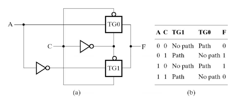 其实在三态门的应用中我们提到过这个例子,其实就是一个传输门的构建