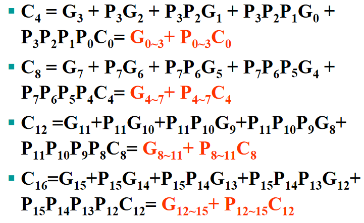 - 用于 4 位行波加法器: