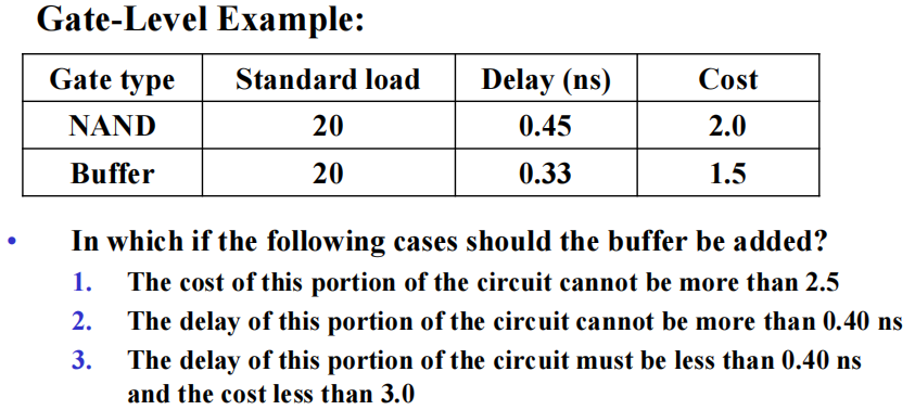 - 工艺映射:只能用与非门 / 或非门构建电路
