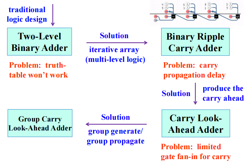 - 加法器:半加器、全加器、行波加法器、超前进位加法器