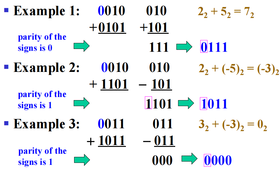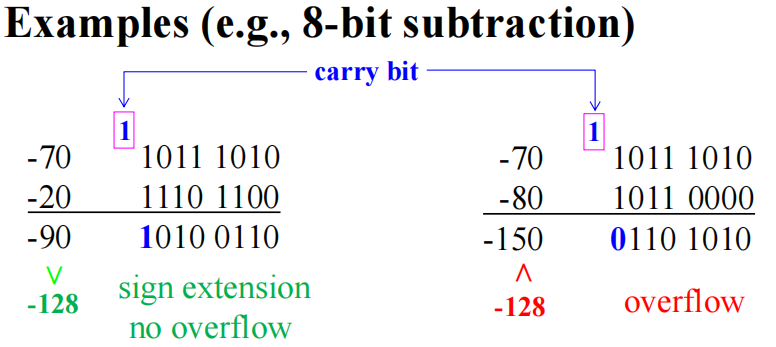 - 检查结果是否溢出 ( 有没有来自最高位的进位 )