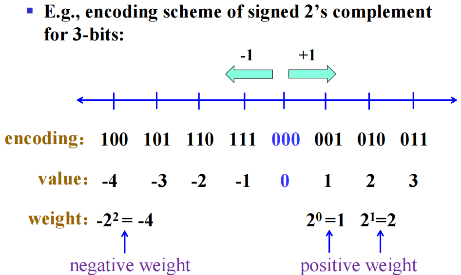 用二进制表示带符号整数 (signed integers):\(sa_{n-1}\dots a_2a_1a_0\),其中对于最高位 s: