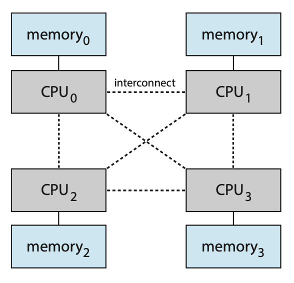 于是,管理好哪个帧放在哪个位置上会极大影响 NUMA 系统的性能。如果还是把所有内存一视同仁,CPU 可能会花费更长时间等待。所以对于 NUMA,我们的目标是让分配的内存帧和进程运行所处的 CPU 尽可能接近(即最小化时延