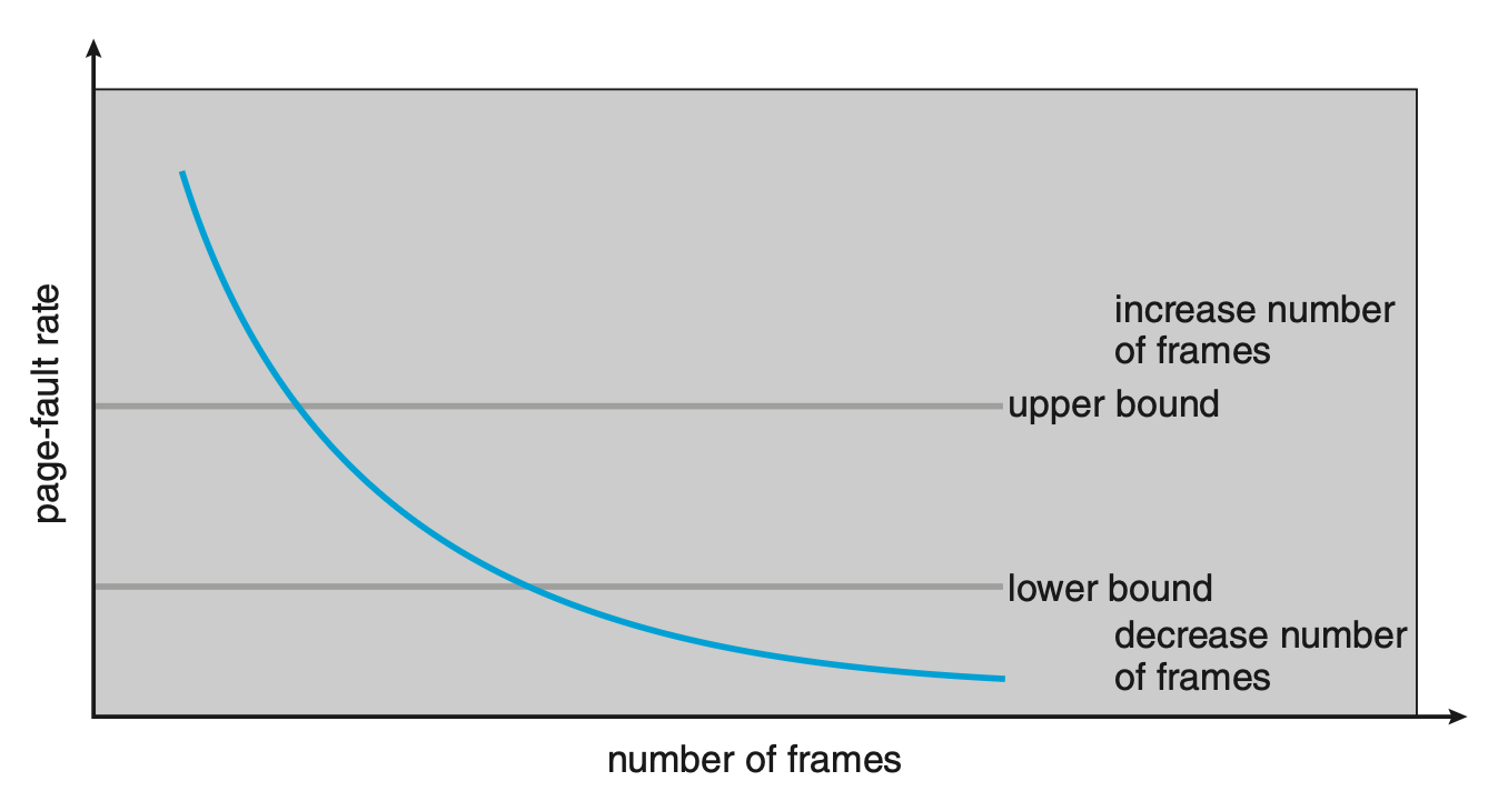 - 若页错误率低于下界,则要移除一些该进程拥有的帧