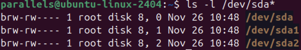 其中 8 是主设备号,0, 1, 2 是次设备号。