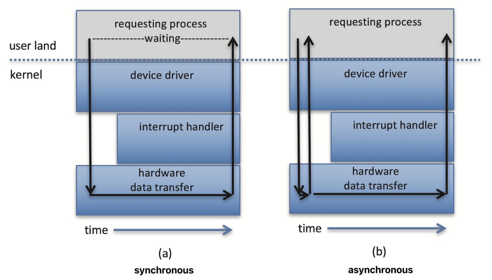 - 虽然 I/O 设备所执行的物理操作通常是异步的(需要不同或不可预测的时间